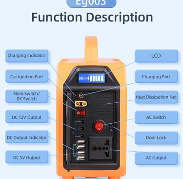 What sets the EG003PB apart from other power supplies is its unique configuration that allows it to meet various electronic power needs. Equipped with multiple output options, it can simultaneously charge multiple devices. This feature is particularly beneficial for groups on outdoor explorations who rely on various gadgets for safety and convenience. The versatility of the EG003PB ensures that each member of your team has the necessary power supplies at their disposal.
