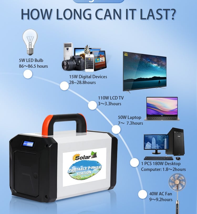 Moreover, it provides an option for solar panel specifications, supporting an 18V 100W(max 200W) solar charging system. This feature enhances the station's functionality, offering an eco-friendly recharging method.