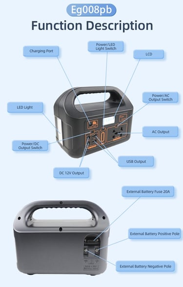 Overall, the EG-008 Portable Power Station is a game-changer when it comes to portable energy solutions. Its combination of portability, versatility, safety features, and eco-friendliness make it an essential tool for anyone who needs a reliable and efficient power source on the go. Whether you're camping in the great outdoors or navigating through a power outage at home, the EG-008 has got you covered.